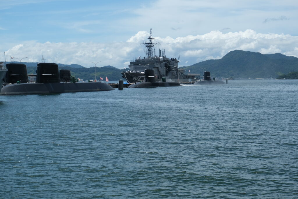 静かな海沿いには、いくつもの自衛艦や潜水艦が停まっていた。